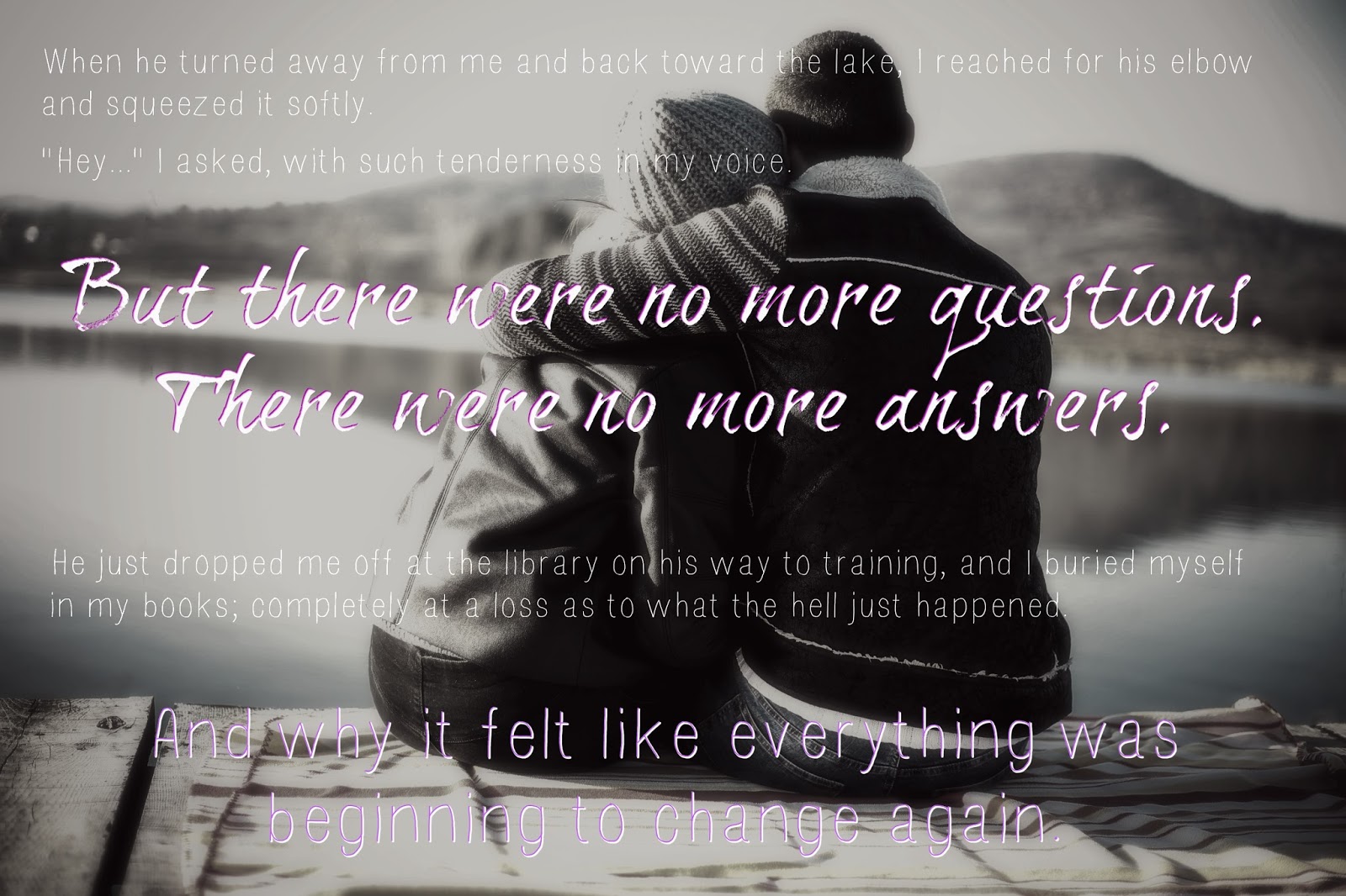 These are the non-spoken titles I was known as since I started at Lake Shore Uni almost two years ago now. When given the chance to leave my horrific childhood behind – I didn’t hesitate. In fact, I was ecstatic to have the door hit me on the ass on my way out of town; because the only two things I actually loved in my traumatic life…