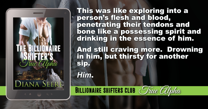 Diana Seere was raised by wolves in the forests outside Boston and San Francisco. The only time she spends in packs these days is at romance writing conventions. In truth, Diana is two New York Times and USA Today bestselling authors who decided to write shifter romance and have more fun. You can find “her” on Facebook at Diana Seere’s Facebook Page: https://www.facebook.com/DianaSeere Sign up for her New Releases and Sales email newsletter here: http://eepurl.com/beUZnr