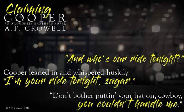 “I read this story in one night… as in it was so good I didn’t sleep because I had to find out what happened. AF Crowell is putting out another great series and this one has sexy cowboys!! YES!!!!” ~Beth at White Hot Reads