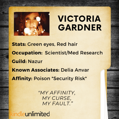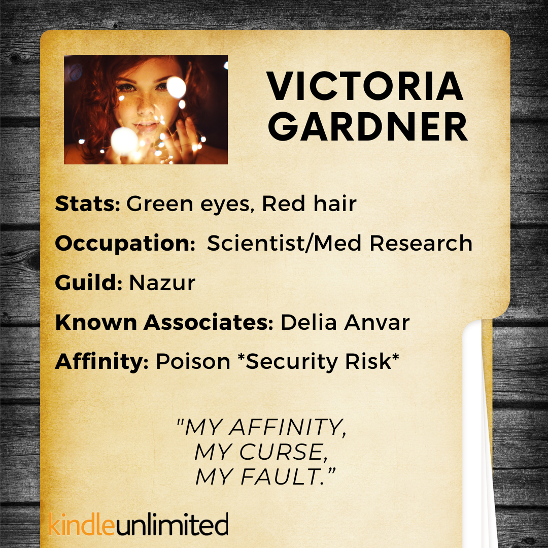 Victoria Gardner was used to being the villain in other people’s stories. ‘Poison Pucker’ in the press translated to ‘pariah’ in the Guilds. Her affinity made her dangerous, but only to those who crossed her. When she arrives home to discover her sister abducted, it ignites every protective instinct. Kidnap and blackmail were trouble enough, but needing a stranger’s help to save her sister was worse. Trustworthy allies were few and far between in her life.