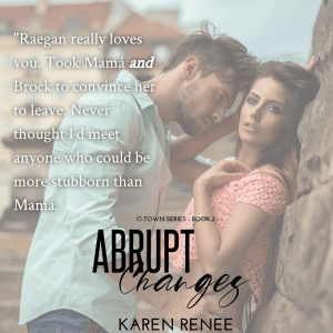 Sitting on the porch again, I smiled. It was good Mamá had dropped by, because regardless of my age, that was a lecture I needed to hear. Even though I heard every word she said, and I agreed with her; I wasn’t sure I could stay away from Raegan.