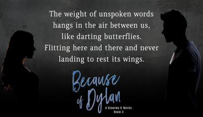“Because of Dylan is a standalone, slow burn, forbidden, angsty romance featuring a heroine who is stronger than she realizes, and the cocky-on-the-outside, sweet-on-the-inside hero of her dreams. A satisfying HEA is guaranteed.”